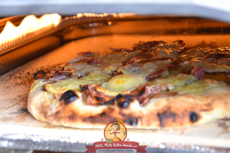 NB: Vous pouvez bien sûr faire cuire votre pizza raclette dans un four traditionnel. Dans ce cas préchauffez-le à 230°C et enfournez pour 15 à 20 min.