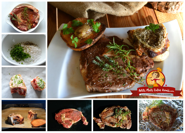 Faites griller les entrecôtes sur la plancha ou autres moyens de cuisson selon les préférences de chacun. Retournez-les sans les piquer et une fois cuites, enfermez-les 5 mn dans une grande feuille de papier d’aluminium en les salant et les poivrant.