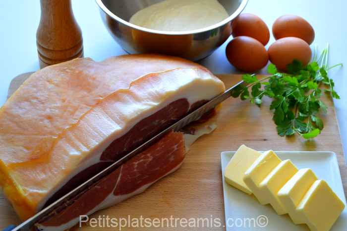 Avec ces quantités vous pouvez réaliser 10 à 12 financiers.- Découpez le bas des tranches de jambon (la partie la plus sèche) puis coupez-les en petits dés. Coupez les tranches en 2 ou en 3.