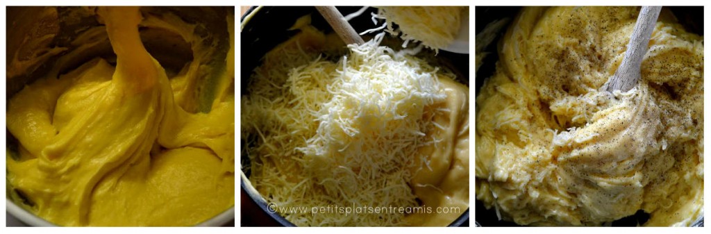 Préparez une pâte à choux en y ajoutant 20 g de beurre supplémentaire. La recette de la pâte à choux est ici.
