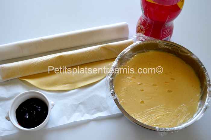 - Commencez par préparer une crème pâtissière avec l’arôme de votre choix (vanille, Grand-Marnier …) en suivant la recette ici et réservez-la au réfrigérateur couverte d’un film alimentaire au contact.