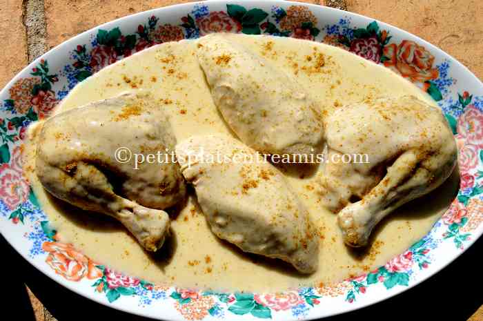 C’est une délicieuse recette de poulet au curry que je vous invite à découvrir aujourd’hui. Ce plat d’influences culinaires française et indienne est un subtil mélange de saveurs douces au palais. Pour ce plat j’ai utilisé du curry vert que je trouve beaucoup plus doux que le curry classique. La crème qui le nappe est à « tomber par terre » et vos convives vont s’en lécher les doigts. Une recette à tester sans modération !