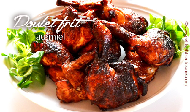 C’est une recette de poulet frit au miel que je vous propose aujourd’hui. Bien préparé, le poulet frit est un plat délicieux qui remporte toujours un vif succès sur une table. Dans cette recette, il est d’abord cuit dans un bouillon de poule, mariné dans une délicieuse sauce à base de miel puis rapidement frit ce qui permet à la chair de garder tout sa saveur et son moelleux. Servi avec une salade ou des pommes de terre, c’est un petit festin que vous allez savourer.