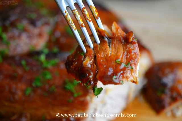 Vous pouvez réaliser avec la même marinade de la poitrine de porc laquée. Le résultat est tout aussi délicieux et fondant.